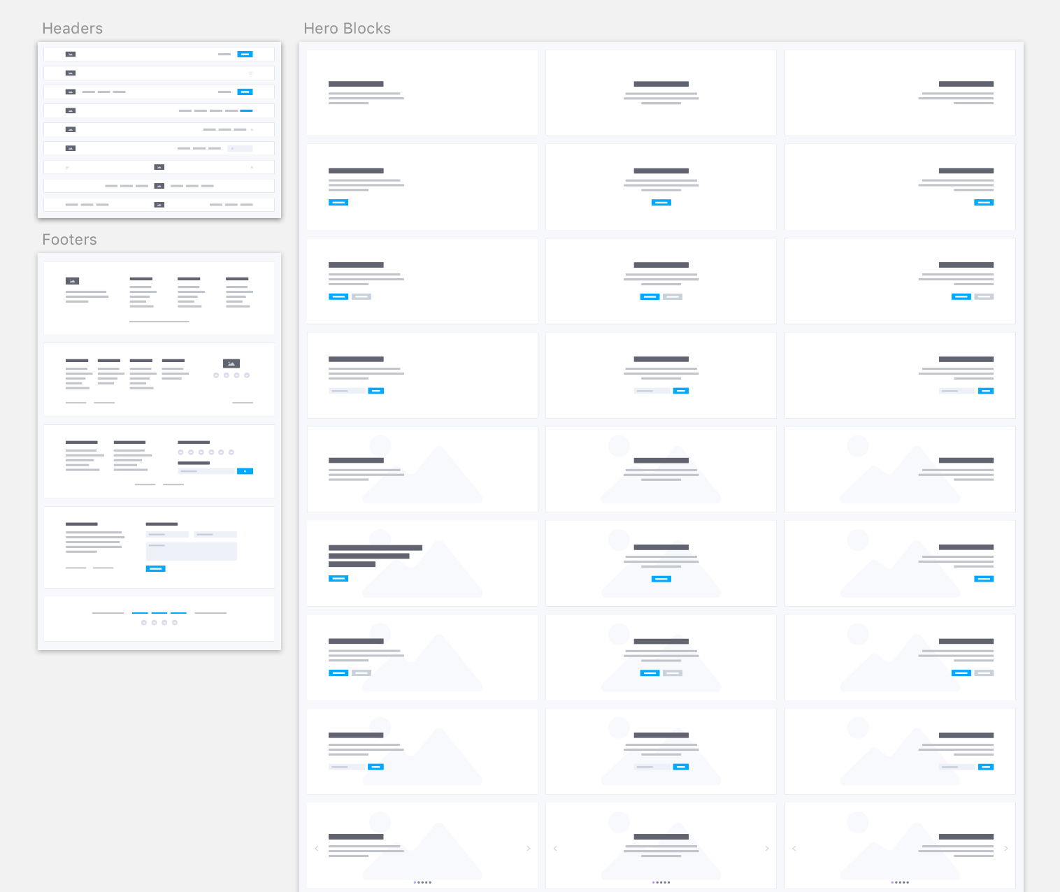 212 pre-made blocks that you can drag & drop to quickly build your page. Unlink a block from its symbol to customize it however you'd like.